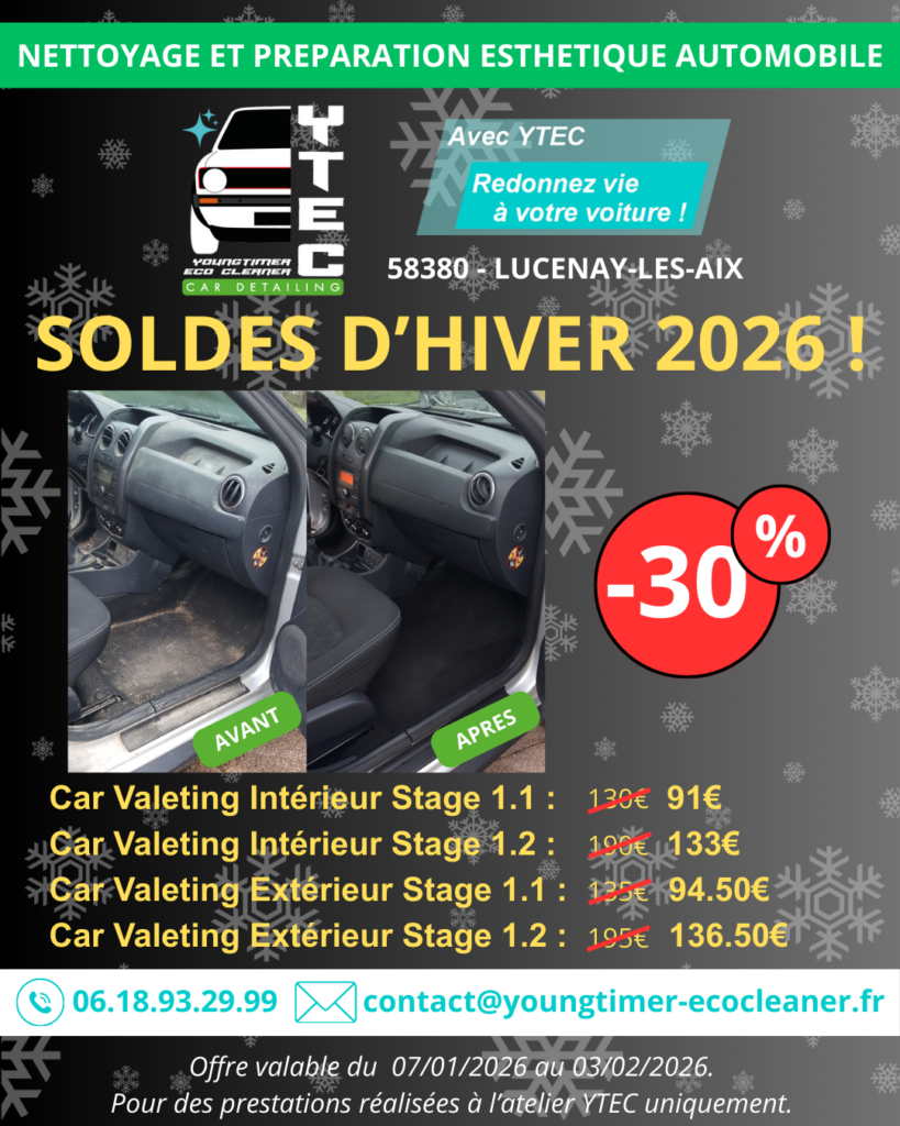 📅 Comment en profiter ? → Contactez-moi directement par téléphone au 06.18.93.29.99 ou par email à contact@youngtimer-ecocleaner.fr.